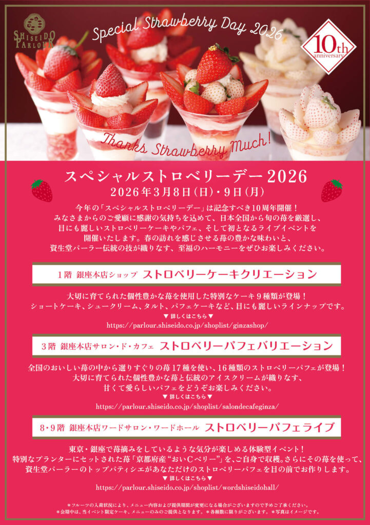 資生堂パーラー 銀座本店の「スペシャルストロベリーデー2026」で当社の「とちひめ」がパフェやケーキになります。