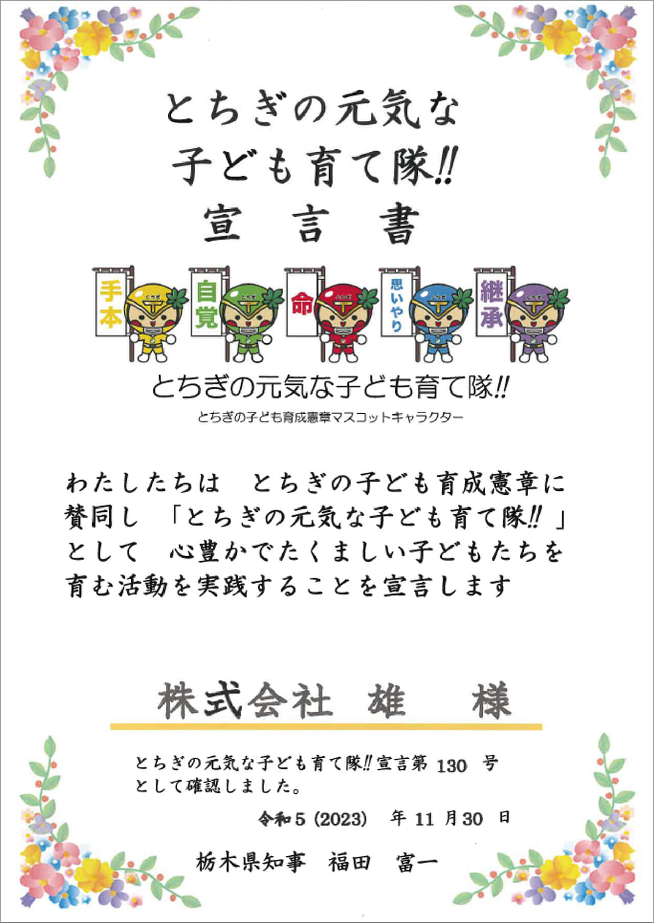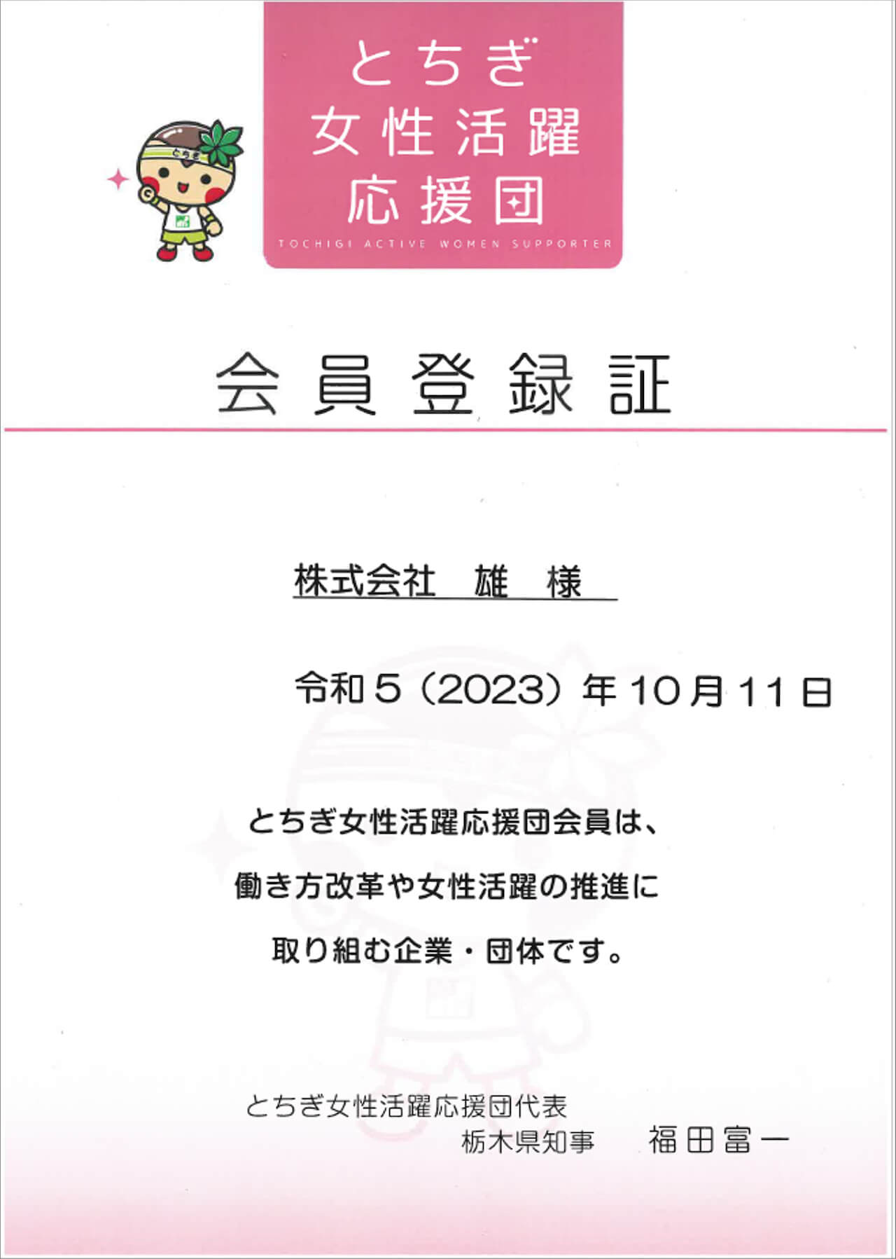 女性の活躍を様々な角度から支援する「とちぎ女性活躍応援団」に登録し、お子さんの急な体調不良などにも対応し、子育て世代の女性でも仕事のしやすい環境を整えています。